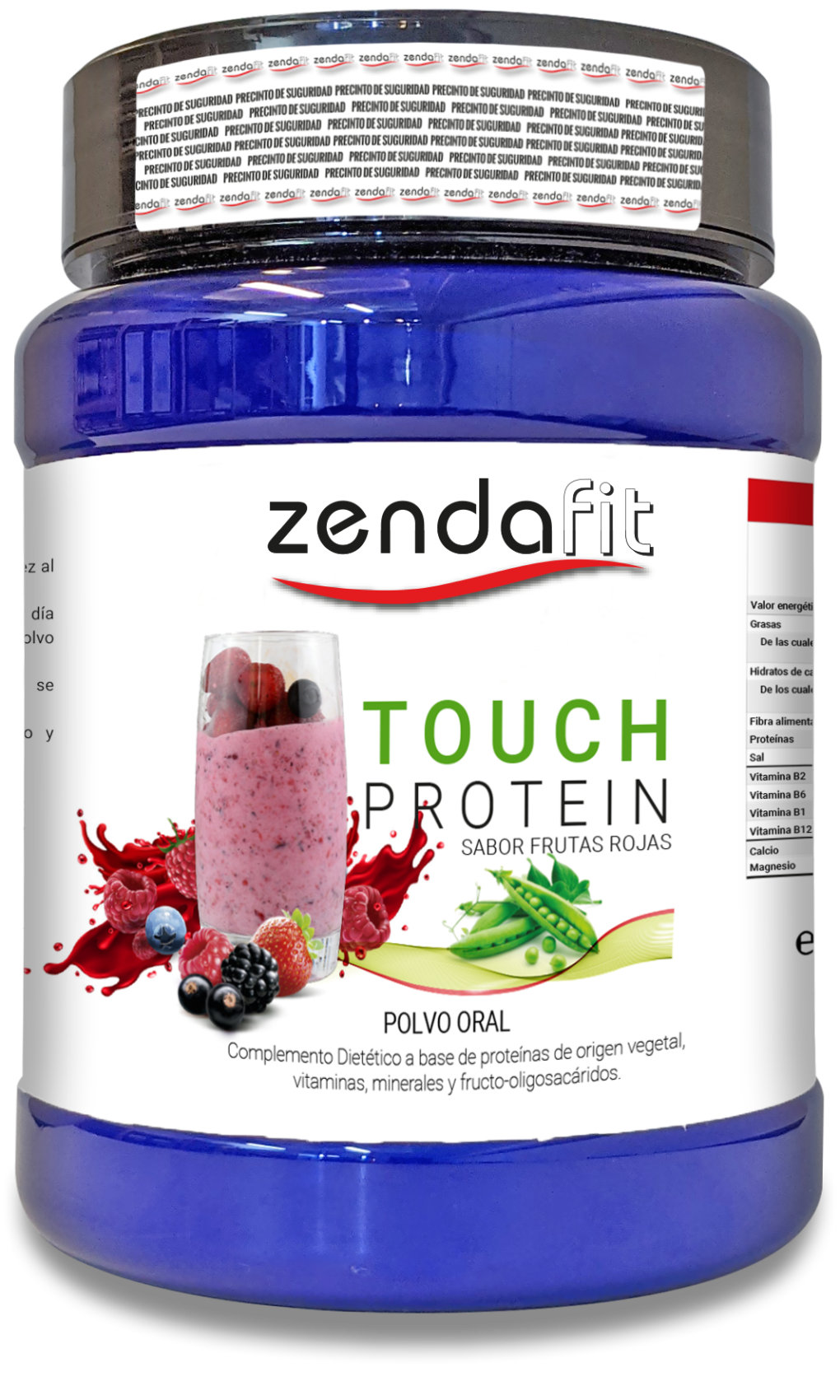 Ingredientes: Aislado de proteína de arveja, vitamina B1 (tiamina), Vitamina B2 (Rivoflavina), Vitamina B6 (Piridoxina), Vitamina B12 (Cianocobalamina), Fructo-oligosacáridos, Fosfato dicálcico, Carbonato de magnesio, excipientes
